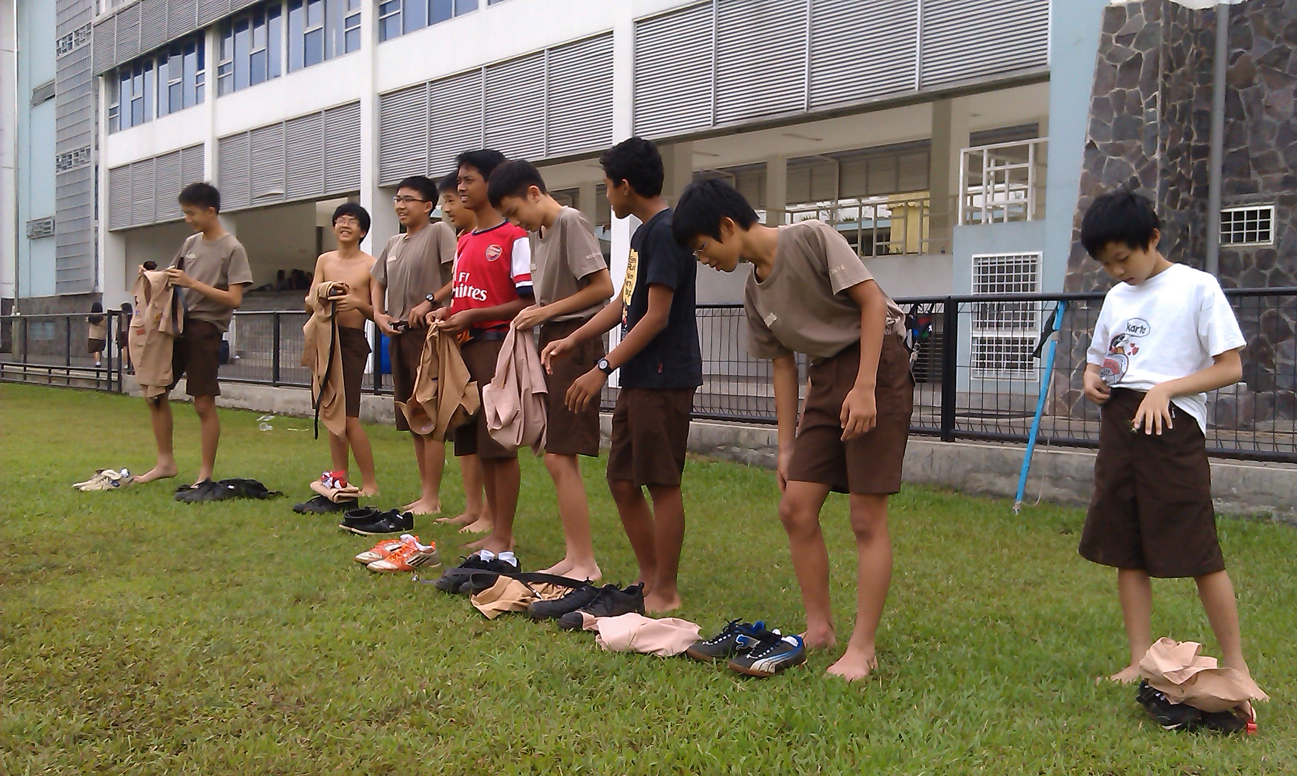Foto kali ini menampilkan beberapa adegan buka-bukaan. Syukurlah masih dalam batas kewajaran, karena ini adalah bagian dari pemisahan latihan untuk peserta didik putra & putri. Percayalah, semuanya masih terlaksana dalam kesenonohan (betul ya, lawan dari tidak senonoh adalah senonoh? #jeprutistilah).